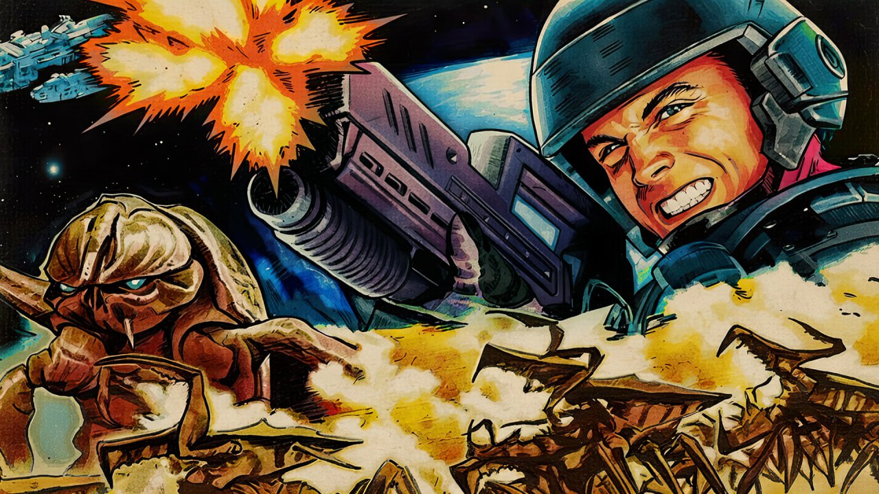 Markige Sprüche, spannende Schlachten, Soldaten, die außerirdische Insekten mit dicken Knarren zum Platzen bringen… und jede Menge Gore. Das ist das unterhaltsame Fundament des Sci-Fi-Klassikers Starship Troopers. Aber unter dieser pulpigen Oberfläche verbirgt sich ein echtes Meisterwerk, das weitaus mehr kann, als die Soldaten der Zukunft als galaktische Kammerjäger zu zeigen. Jeder Rechte mit etwas Sinn für Spaß muss diesen Film gesehen haben! Im neuen Thymoscast widmen wir uns daher ausgiebig Verhoevens bombastisch inszeniertem Film und dem Politischen in Heinleins Roman.